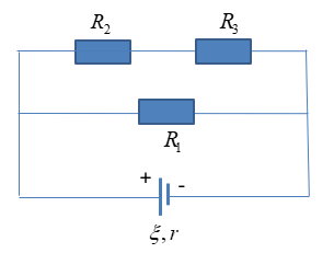 Cho mạch điện như hình vẽ: Nguồn điện có suất điện động 12V và điện trở trong \(1\Omega \), các điện trở thuần \({R_1} = 40\Omega ;{R_2} = 25\Omega ;{R_3} = 35\Omega \). Công suất tiêu thụ của mạch ngoài gần giá trị nào sau đây nhất là: