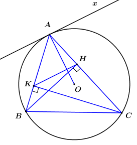 Chứng minh được \(\angle xAC = \angle AHK\)\( \Rightarrow Ax//HK\)