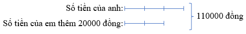 Tính tổng số tiền của hai anh em lúc đầu và khi em có thêm 20000 đồng, sau đó vẽ sơ đồ của bài toán, rồi từ sơ đồ tính số tiền của anh, rồi tính số tiền của em.