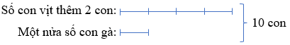 Nhà An nuôi một số gà và vịt. Nếu có thêm 2 con vịt nữa thì số gà bằng \(\dfrac12\) số vịt.