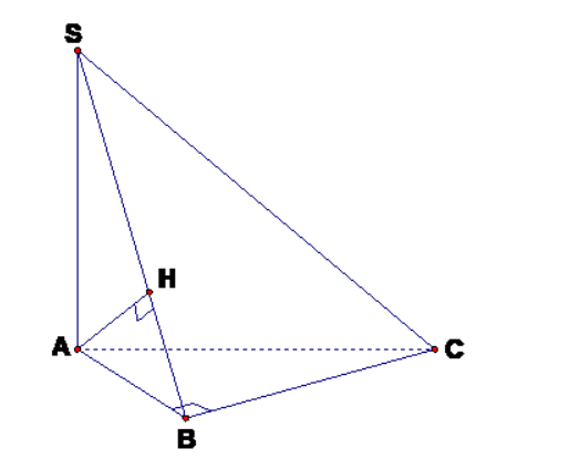 \(\dfrac{1}{{A{H^2}}} = \,\dfrac{1}{{S{A^2}}} + \dfrac{1}{{A{B^2}}}\). Từ đó tính được \(AH\).