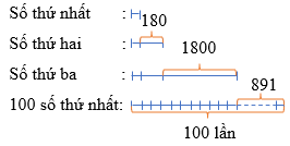Tìm ba số tự nhiên, biết rằng số thứ nhất bé hơn số thứ hai là 180, số thứ hai bé hơn số thứ ba là 1800, số thứ ba bé hơn 100 lần số thứ nhất là 891 đơn vị.