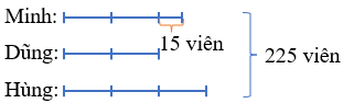 Ba bạn Minh, Dũng, Hùng có 225 viên bi. Biết rằng Minh có nhiều hơn Dũng 15 viên bi, Dũng có số