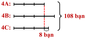 Khối 4 của một trường tiểu học có 3 lớp với tổng số học sinh là 108 bạn. Biết rằng số