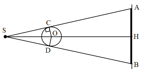 Một điểm sáng S cách màn một đoạn l = 4,5m. Đặt một quả cầu chắn sáng tâm O bán kính R = 0,3m giữa S và màn sao cho OS vuông góc với màn và cách S một đoạn OS = d.