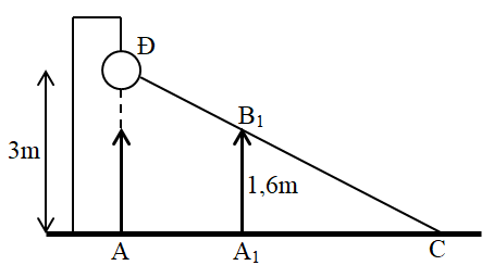 Một người có chiều cao 1,6m, đứng ngay dưới ngọn đèn treo ở độ cao 3m. Người này bước đi