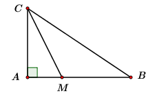 Cho \(\Delta ABC\) vuông tại \(A\) có \(AB = 3,\,\,AC = 2.\) Trên cạnh \(AB\) lấy điểm \(M\) sao cho \(BM = 2.\) Tính độ dài đoạn thẳng \(CM.\)