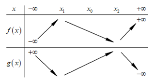 Biết rằng phương trình \(f(x) = g(x)\) có nghiệm \({x_0} \in \left( {{x_1};{x_2}} \right)\).Số điểm cực trị của hàm số \(y = \,\left| {f(x) - g(x)} \right|\)là