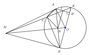 Ta sẽ chứng minh: \(\left\{ \begin{array}{l}NI//BK\\NA = NB = \dfrac{1}{2}AB\end{array} \right.\)
