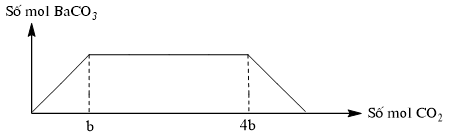 Hòa tan 41,4 gam hỗn hợp gồm Na, Na2O, Ba và BaO vào H2O dư, thu được dung dịch X và b mol H2. Sục từ từ khí CO2 vào X, kết quả thí nghiệm được biểu diễn trên đồ thị sau:
