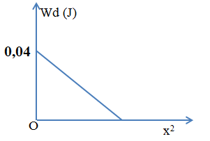 Một con lắc lò xo gồm lò xo và vật nhỏ có khối lượng 80g dao động điều hòa trên trục Ox . Hình bên là đồ thị biểu diễn sự phụ thuộc của động năng \({W_d}\) của vật nhỏ vào bình phương li độ dao động \({x_2}\). Lấy \({\pi ^2} = 10\). Tốc độ trung bình của vật trong một chu kì dao động là