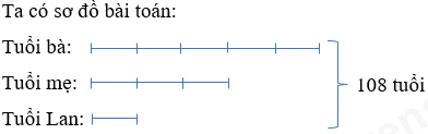 Tổng số tuổi của bà, mẹ và Lan là 108 tuổi. Biết rằng tuổi mẹ gấp 3 lần tuổi Lan và