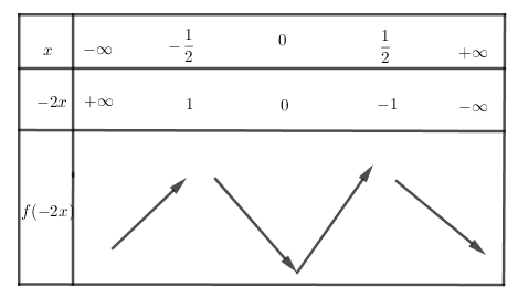 Cho hàm số \(y = f\left( x \right)\)có bảng biến thiên như hình vẽHàm số \(y = f\left( { - 2x}