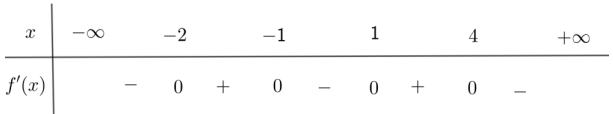 Cho hàm số \(f\left( x \right)\) có đạo hàm \(f'\left( x \right)\) trên \(\mathbb{R}\) và có bảng xét