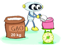 Chia 20kg gạo vào các túi, mỗi túi 5kg. Hỏi được bao nhiêu túi gạo như