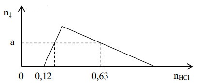 Hoà tan hết 37,86 gam hỗn hợp gồm Ba, BaO, Al và Al2O3 vào lượng nước dư, thu được dung dịch X và 0,12 mol khí H2. Cho dung dịch HCl dư vào X, số mol kết tủa phụ thuộc và số mol HCl được biểu diễn trong đồ thị sau: