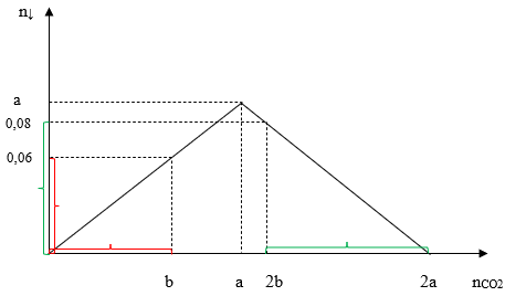Sục từ từ CO2 vào V lít dung dịch Ba(OH)2 0,5M; kết quả thí nghiệm biểu diễn trên đồ thị sau: