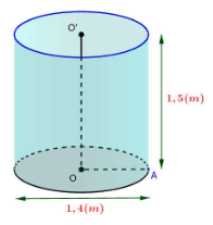 Một bồn nước dạng hình trụ có đường kính đáy bằng \(1,4\left( m \right)\) và chiều cao bằng