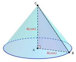 Cho \(\Delta ABC\) vuông tại \(A\) có \(AB = 3\left( {cm} \right),AC = 4\left( {cm} \right)\). Tính diện tích xung quanh của hình tạo thành khi quay tam giác \(ABC\) quanh cạnh \(AC\) cố định của nó.