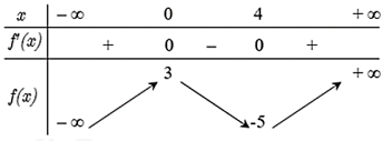 Cho hàm số \(f\left( x \right) = a{x^3} + b{x^2} + cx + d{\rm{ }}\left( {a,b,c,d \in \mathbb{R}} \right)\) có bảng biến thiên như sau :