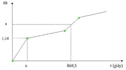 Hoà tan 2,64 gam hỗn hợp bột gồm Fe3O4 và Cu (tỉ lệ mol tương ứng là 2:1) trong dung dịch HCl vừa đủ, thu được dung dịch X. Cho toàn bộ X tác với dung dịch chứa 0,11 mol AgNO3, thu được kết tủa Y, dung dịch Z. Đem điện phân dung dịch Z với cường độ dòng điện không đổi 5A. Đồ thị biểu diễn về độ giảm khối lượng dung dịch Z với thời gian t như sau: