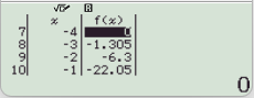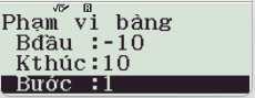 - Sử dụng chức năng TABLE để tìm tập nghiệm của bất phương trình.