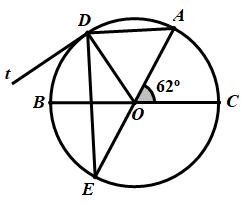 Tính được \(\angle AOD = \angle AOC = {62^0}\); \(\angle DAE = \angle EDt = {59^0}\)