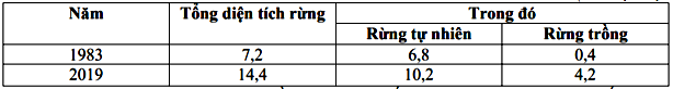 Cho bảng số liệu: DIỆN TÍCH RỪNG NƯỚC TA THỜI KÌ 1983 – 2019 (Đơn vị: triệu ha) Theo bảng