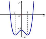 Hàm số trùng phương \(y = f\left( x \right)\) có đồ thị như hình vẽ dưới đây. Phương trình \(f\left( x \right) + 1 = 0\) có bao nhiêu nghiệm thực?