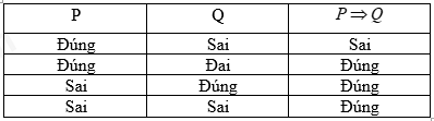Sử dụng bảng logic về tính đúng sai của mệnh đề kéo theo: