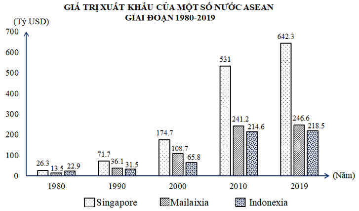 Cho biểu đồ:(Nguồn: https://andrews.edu.vn/so-sanh-gia-tri-xuat-khau-cua-viet-nam-voi-cac-nuoc-asean)Theo biểu