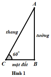 Một cái thang dài \(5m\), đặt tạo với mặt đất một góc bằng \({60^0}\) (Hình 1). Vậy chân thang