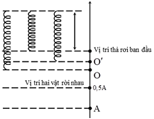 Một lò xo nhẹ có chiều dài tự nhiên là 40cm được treo thẳng đứng với đầu trên cố định, đầu dưới gắn vào vật nhỏ có khối lượng \({m_1} = 250g\). Người ta dán vào phía dưới \({m_1}\) một vật nhỏ thứ 2 có khối lượng \({m_2} = 150g\). Khi hệ vật cân bằng, lò xo dài 44cm. Lấy \(g = {\pi ^2} = 10\left( {m/{s^2}} \right)\). Nâng hệ vật theo phương thẳng đứng đến khi lò xo có chiều dài 36cm rồi thả nhẹ. Biết \({m_2}\) rời khỏi \({m_1}\) khi lực căng giữa chúng đạt tới 3N. Sau khi 2 vật tách rời nhau, khoảng cách giữa \({m_1}\) và \({m_2}\) tại thời điểm \({m_1}\) tới vị trí lò xo dãn cực đại lần đầu tiên gần nhất với giá trị