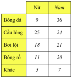 Trường khảo sát môn thể thao yêu thích của các bạn ở trong lớp, thu được kết quả như sau: