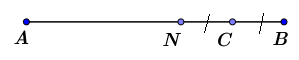 Vẽ đoạn thẳng \(AB = 10cm\). Lấy điểm \(C\) thuộc đoạn thẳng \(AB\) sao cho \(AC = 8\)cm. Lấy điểm \(N\) nằm giữa \(A\) và \(C\) sao cho \(C\) là trung điểm của \(BN\). Tính \(NC\) và \(NB\).