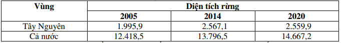 DIỆN TÍCH RỪNG CỦA VÙNG TÂY NGUYÊN VÀ CẢ NƯỚC GIAI ĐOẠN