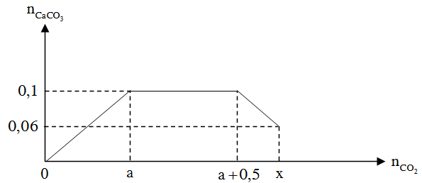 Sục khí x mol khí CO2 vào dung dịch X chứa hỗn hợp Ca(OH)2 và NaOH, kết quả thí nghiệm được