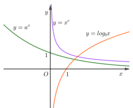 Cho các đồ thị hàm số \(y = {a^x}\), \(y = {\log _b}x\), \(y = {x^c}\) ở hình vẽ sau đây: