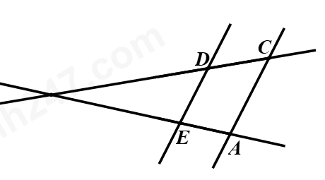 Cho hình vẽ sau, tìm số giao điểm của của \(DC\) và \(EA\)?