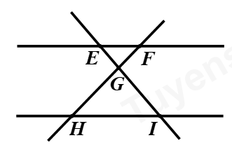 Cho hình vẽ sau:a) Chỉ ra các cặp đường thẳng song song.b) Chỉ ra ba cặp đường thẳng cắt