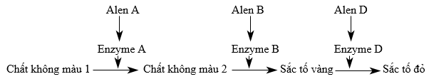 Một loài thực vật, tính trạng màu hoa do 3 cặp gen A, a; B, b và D, d phân li độc lập cùng quy định theo đồ chuyển hoá các chất như sau: