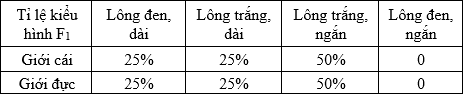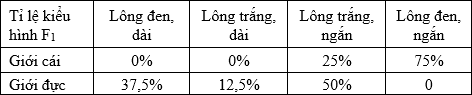 Cho biết các gen liên kết hoàn toàn. Theo lí thuyết, trong số các cá thể cái lông đen, ngắn ở F1 của phép lai 2, cá thể mang 4 alen trội chiếm tỉ lệ