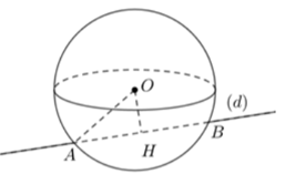 Cho mặt cầu \((S)\) có tâm \(O\) bán kính \(R = 5\,\,(cm)\). Đường thẳng \((d)\) cắt \((S)\) tại \(A,\,\,B\) và \(AB = 8\,\,(cm)\). Tính khoảng cách từ \(O\) tới \((d)\).