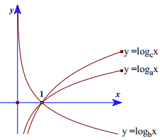 Cho các hàm số \(y = {\log _a}x,\,\,y = {\log _b}x,\,\,y = {\log _c}x\) có đồ thị như hình vẽ dưới