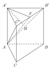 - Kẻ \(A'H \bot AF\) thì \(A'H\) chính là khoảng cách từ điểm \(A'\) đến mặt phẳng \(\left( {AB'C'} \right)\)