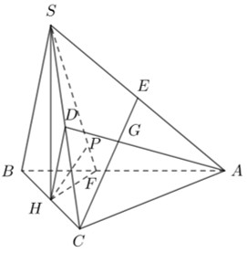 - Gọi \(D,\,\,E\) lần lượt là trung điểm của \(SC,\,\,SA\) \( \Rightarrow d\left( {G,\left( {SAB} \right)} \right) = \dfrac{2}{3}d\left( {D,\left( {SAB} \right)} \right) = \dfrac{2}{3}d\left( {H,\left( {SAB} \right)} \right)\)