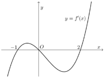 Quan sát đồ thị hàm số, tính \(\int\limits_{ - 1}^0 {f'\left( x \right)dx} \) và \(\int\limits_{ - 1}^2 {f'\left( x \right)dx} \), từ đó so sánh \(f\left( 0 \right);\,f\left( { - 1} \right);\,f\left( 2 \right)\)