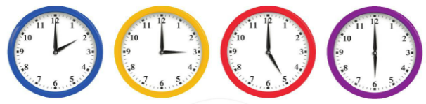 Trong các đồng hồ dưới đây, đồng hồ nào có kim giờ và kim phút tạo với nhau một góc