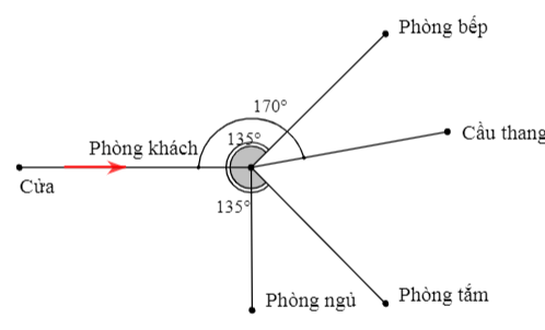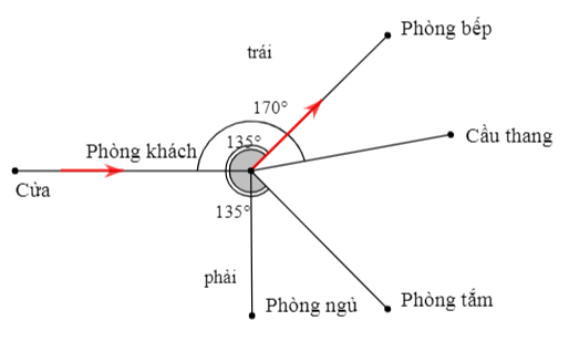 Điền từ thích hợp vào chỗ chấm. “Đi từ của đến phòng khách rẽ trái theo góc \({135^0}\) là…”