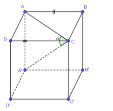 Cho hình hộp chữ nhật \(ABCD.A'B'C'D'\) có \(AB = AD = a;\,\,AA' = a\sqrt 2 \). Tính góc giữa \(A'C\) và